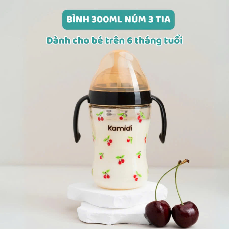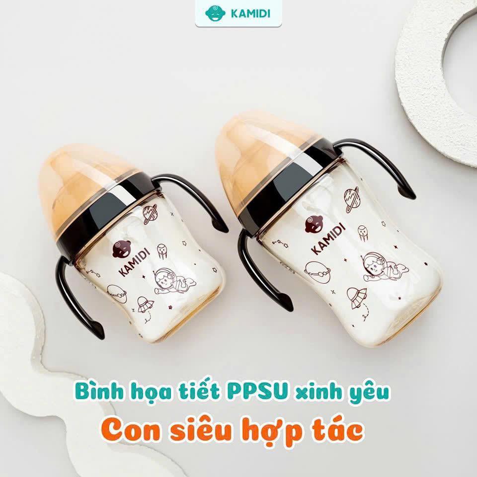 Bình Sữa Cho Bé Kamidi Chất Liệu PPSU Cao Cấp Chống Sặc Đầy Hơi Hiệu Quả Cho Bé - Họa Tiết Gấu/Thỏ/Galaxy/Bơ/Cherry