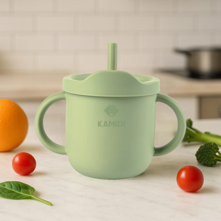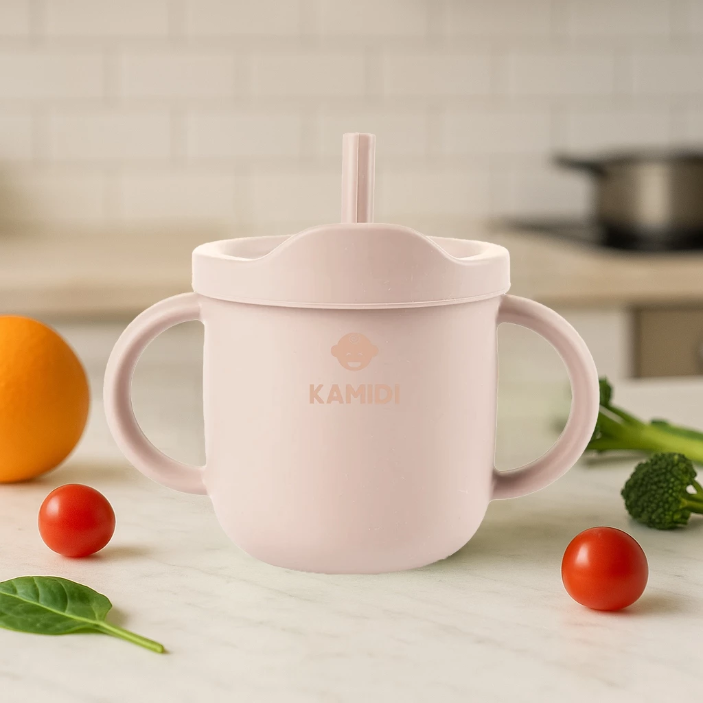 Bé tập uống nước chưa bao giờ dễ dàng đến thế! Cốc Kamidi Silicone mềm, chống tràn, bền bỉ và an toàn – giúp bé tự lập, mẹ yên tâm.