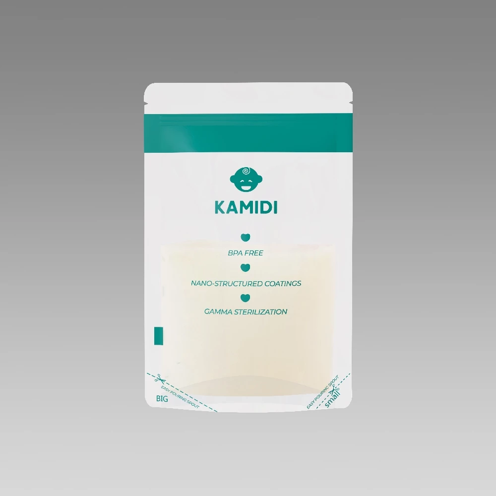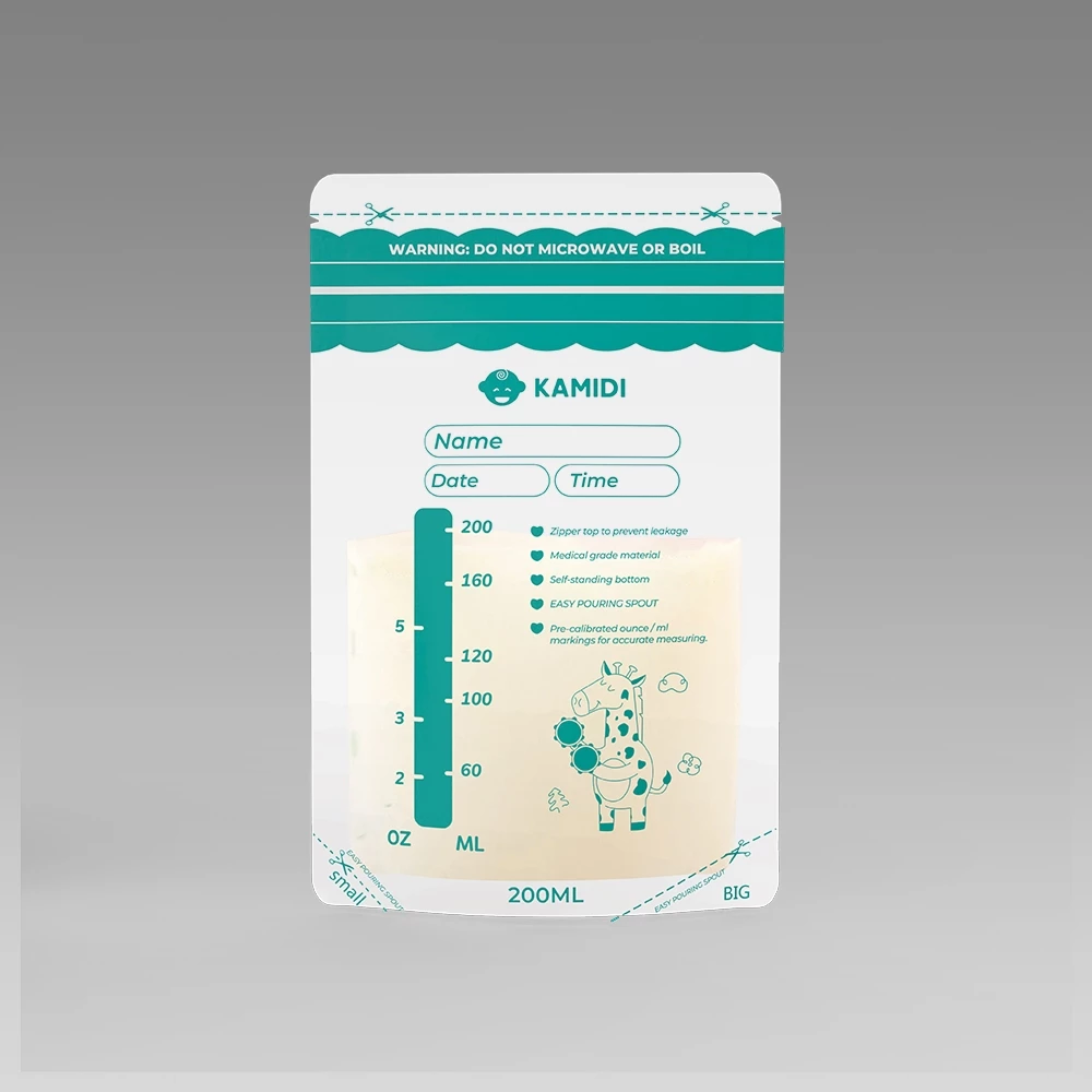 Túi Trữ Sữa Kamidi Nhựa PET Cao Cấp Không Chứa BPA Có Vòi Rót Bình Sữa Tiện Lợi Hộp 50 Túi Dung Tích 200ml