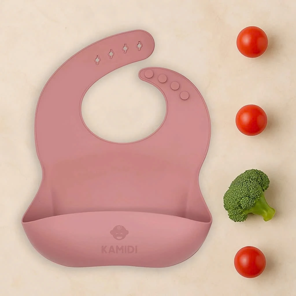 Yếm Silicone Kamidi mềm mại, chống tràn, giúp bé ăn thoải mái mà không lo dây bẩn. Chất liệu an toàn tuyệt đối – mẹ yên tâm, bé sạch sẽ!